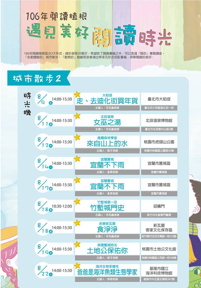 106年閱讀植根~遇見美好閱讀時光:活動場次發表!!