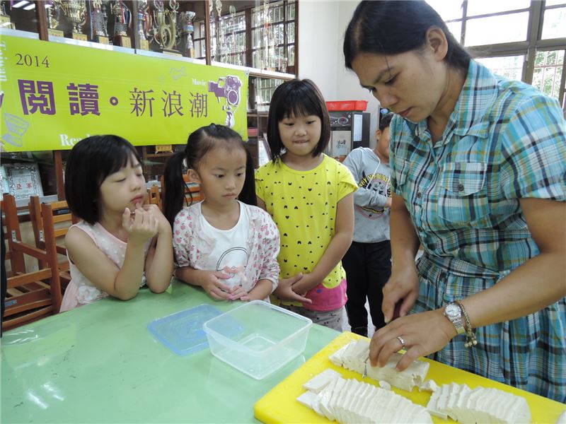 103年10月4日「閱讀新浪潮」活動來到小而美的桃園縣蘆洲鄉外社國小,邀請孺雅工作室執行總監及執行長-陳曉諭老師及黃駿基先生主講生命教育講座,和新住民親子分享動人的生命故事。活動安排親子動手製作越式生菜手捲,一起閱讀人文,品嚐外籍媽媽的家鄉風味菜。