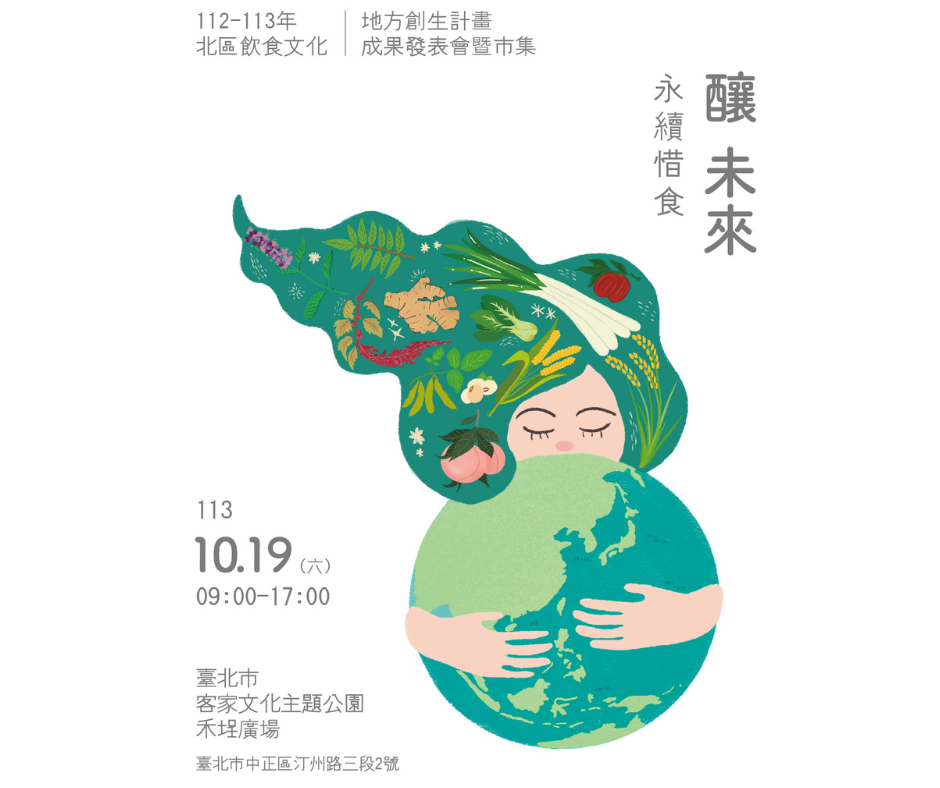 文化部所屬國立新竹生活美學館與財團法人主婦聯盟環境保護基金會、財團法人臺北市客家文化基金會合作,今(19)日於臺北市客家文化主題公園禾埕廣場舉辦「釀未來・永續惜食」成果發表會暨市集活動,呈現112-113年北區飲食文化地方創生計畫團隊的重要成果,同時推廣永續飲食與惜食行動。